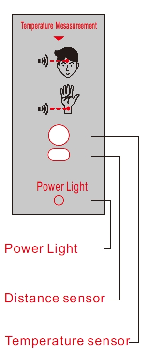 Il sensore di distanza inizia a funzionare quando una persona o un oggetto si trova a 20 cm da esso. Se la temperatura della persona o dell'oggetto rilevato è ≥ 35,5 ℃, viene attivata la voce \"Temperatura normale \"; Se è inferiore a 35,5 ℃, o superiore al valore impostato con l'allarme, viene attivata la voce \"Controlla di nuovo \". Quando la temperatura ambiente è inferiore a 15 ℃, se la temperatura della persona o dell'oggetto rilevato è ≥ 34,5 ℃, viene attivata la voce \"Temperatura normale \"; Se è inferiore a 34,5 ℃, o superiore al valore impostato con l'allarme, viene attivata la voce \"Controlla di nuovo \".